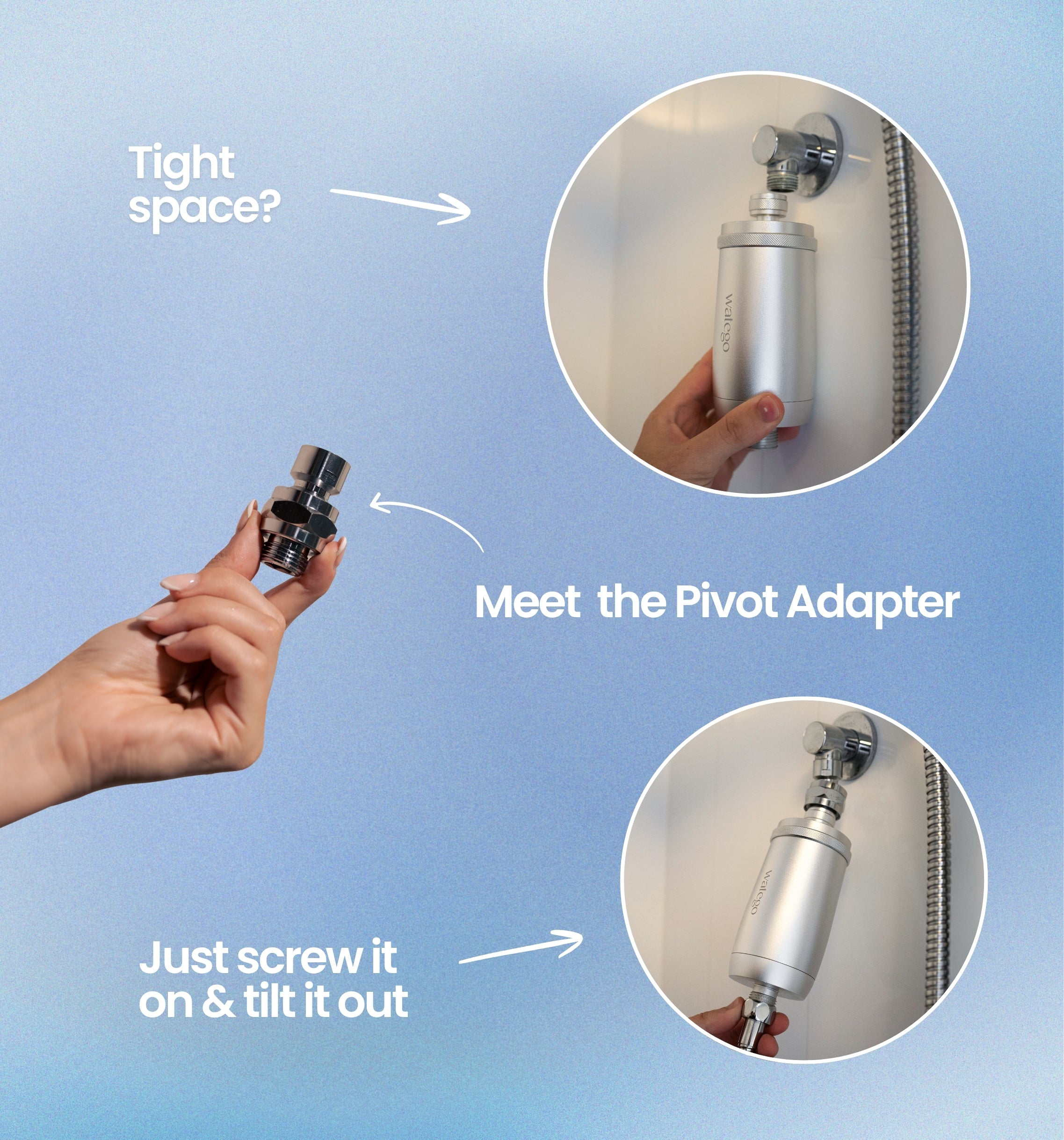 Most showers will fit the Watego filter straight out of the box, but in some cases, you might need a pivoting adapter. Here’s how to check: